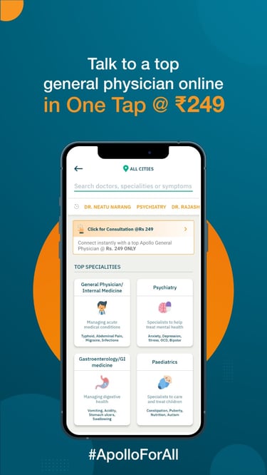 Objective: Increase top-of-mind awareness for Apollo 24/7 as the trusted, credible digital health platform | Reduce self-diagnosis and “Google doctoring” behavior by directly connecting people to real Apollo doctors | Drive teleconsultation adoption, preventive tests, and first-time app downloads.